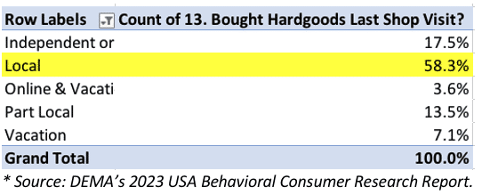 Below is a table from this same consumer survey showing purchasing habits with local dive shops: